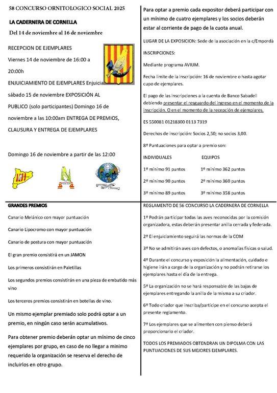 58 concurso ornitológico La cadernera de Cornella